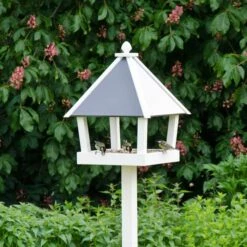 Our bird tables are designed with large feeding areas to allow multiple birds to feed at the same time and generous overhanging roofs to protect food in wet weather. The tables and roofs are constructed from high quality painted timber so you and your birds will enjoy them for many years to come.