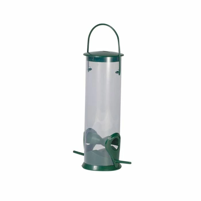 This value-for-money plastic seed feeder is a good introductory product and includes a unique folding perch design and removable ports for easy cleaning.