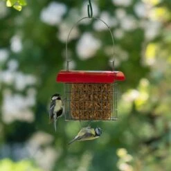 The dried mealworms are compressed into a handy block. The block fits in all our peanut cake feeders and hangers, but you can also put it on a feeding table.