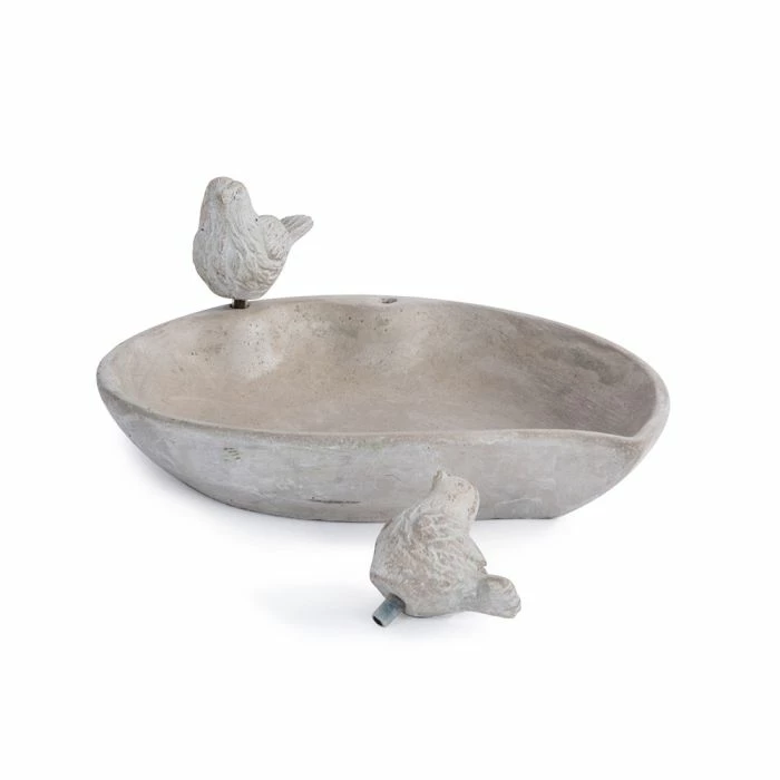 The Licony Bird Bath is made from smooth concrete which gives the bowl a beautiful modern appearance. Shaped like a shallow tear drop, the dish also features two decorative birds.
