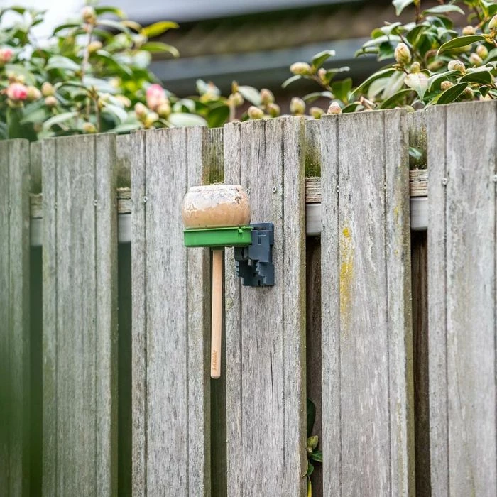 The LONA P1 is a unique vertical peanut butter jar holder. Your garden birds climb via the vertical stick to the delicious LONA peanut butter. Â It is easy to attach to a wall, downspout, tree trunk, fence or pergola. Changing the peanut butter jar is done in one simple twisting motion. Â This sustainable product is recyclable.