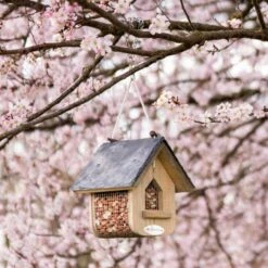 This peanut feeder is woodpecker friendly as it is designed with a large tail prop at the bottom so they can feed comfortably. It is also weight adjustable to help control unwanted birds as well as squirrels.